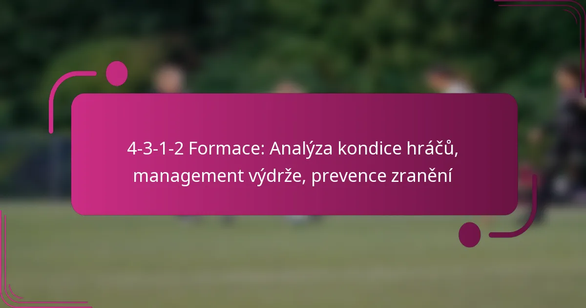 Prevence zranění ve formaci 4-3-1-2 se zaměřuje na přizpůsobený trénink, efektivní kondici a regenerační techniky. Implementací strategických praktik mohou trenéři zlepšit kondici hráčů a snížit pravděpodobnost zranění během zápasů.
