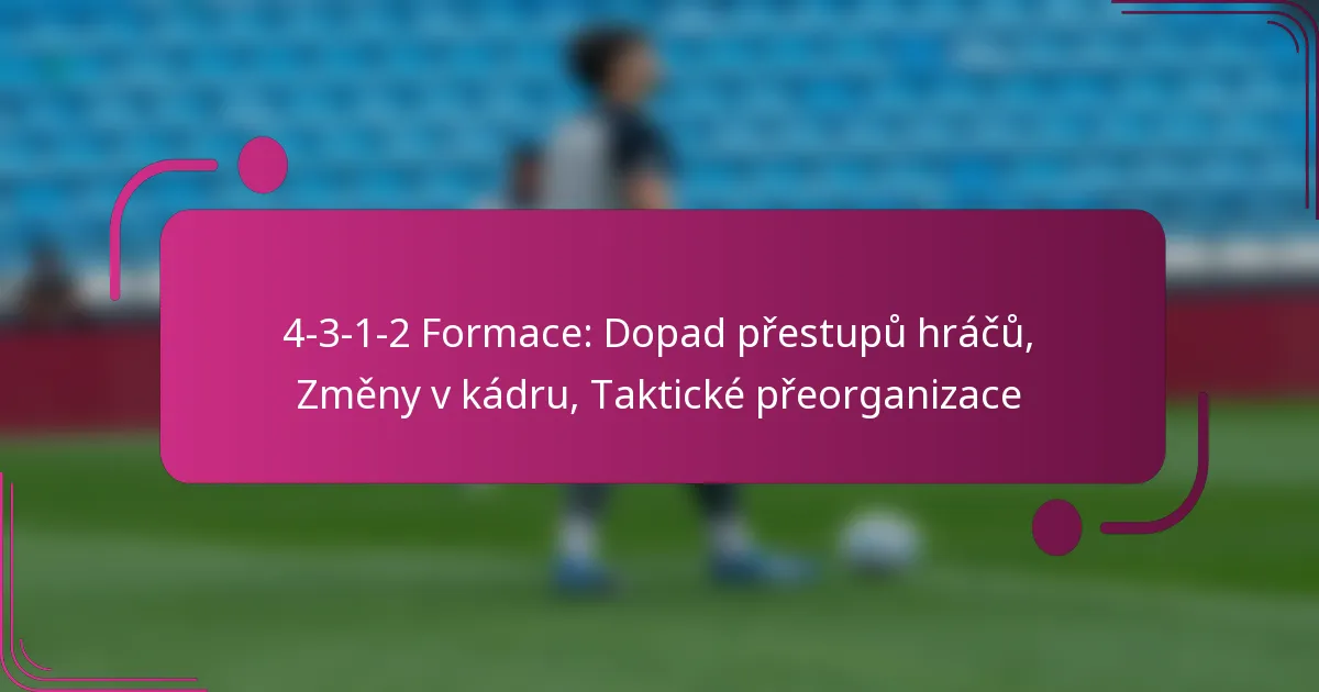Formace 4-3-1-2 je taktická struktura ve fotbale, která zdůrazňuje silnou přítomnost v záloze se čtyřmi obránci, třemi záložníky, jedním ofenzivním záložníkem a dvěma útočníky. Přestupy hráčů a změny v kádru mohou tuto formaci významně ovlivnit, protože mění dynamiku týmu a vyžadují od trenérů přizpůsobení strategií, aby udrželi konkurenceschopný výkon. Zavedení nových hráčů může stávající strukturu posílit nebo narušit, což činí taktickou přeconfiguraci nezbytnou pro úspěch.