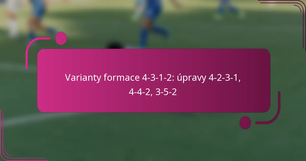Formace 4-3-1-2 slouží jako všestranné taktické uspořádání ve fotbale, které vyvažuje obrannou sílu s útočnými možnostmi. Varianty jako 4-2-3-1 a 4-4-2 přizpůsobují tuto formaci, aby zlepšily kontrolu nad středem hřiště a poskytly větší útočnou flexibilitu, zatímco 3-5-2 nabízí jiný přístup využitím krajních obránců pro šířku. Každá adaptace umožňuje týmům přizpůsobit své strategie na základě silných stránek hráčů a situací v zápase.