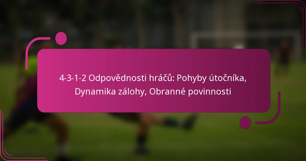 Defenzivní povinnosti ve formaci 4-3-1-2 se zaměřují na udržení struktury, efektivní komunikaci a koordinované úsilí mezi obránci. Každý hráč má specifické odpovědnosti, které přispívají k solidní defenzivní jednotce, zajišťující, že mohou efektivně předvídat a reagovat na pohyby soupeře.