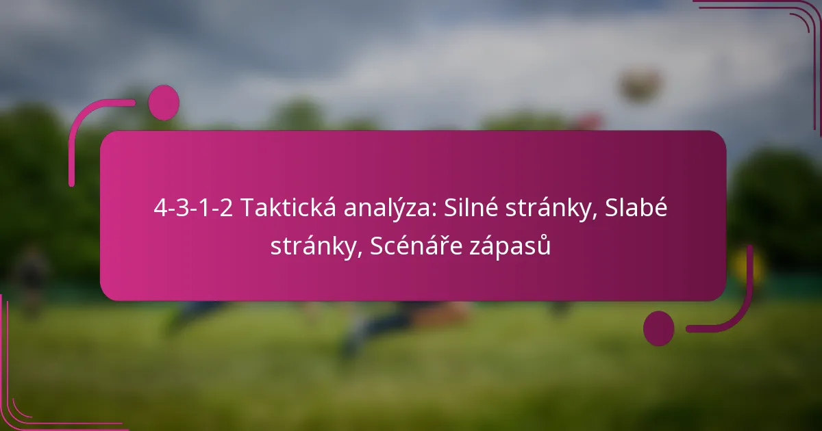 Formace 4-3-1-2 je taktická sestava ve fotbale, která zahrnuje čtyři obránce, tři záložníky, jednoho ofenzivního záložníka a dva útočníky. Tato formace je navržena tak, aby zlepšila kontrolu nad středem hřiště a usnadnila rychlé přechody, což ji činí efektivní pro týmy, které chtějí dominovat v držení míče, zatímco udržují solidní defenzivní strukturu. Nicméně také vykazuje určité slabiny, zejména proti široké hře a v situacích při rychlých protiútocích, což může ohrozit její celkovou efektivitu v různých herních situacích.