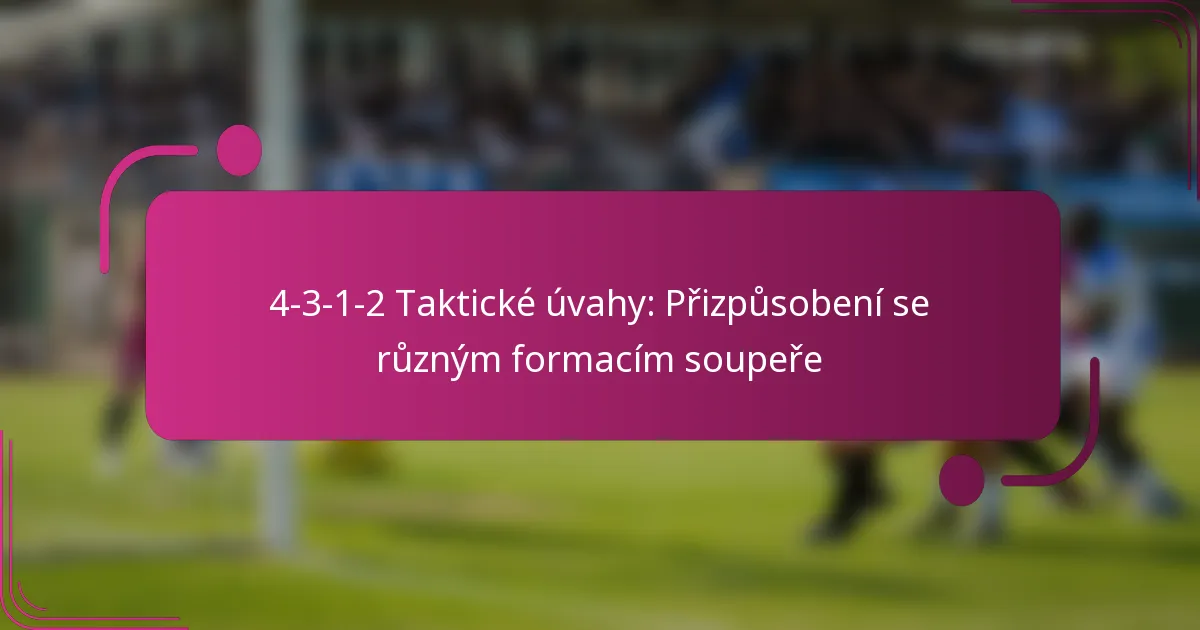 Formace 4-3-1-2 je všestranné taktické uspořádání ve fotbale, charakterizované solidním středem hřiště a dvojitou útočnou linií. Přizpůsobením se různým formacím soupeřů mohou týmy zlepšit své obranné a útočné strategie, využívat slabiny a zároveň posilovat své vlastní silné stránky. Tato přizpůsobivost je klíčová pro udržení kontroly a vytváření příležitostí ke skórování proti různým herním stylům.